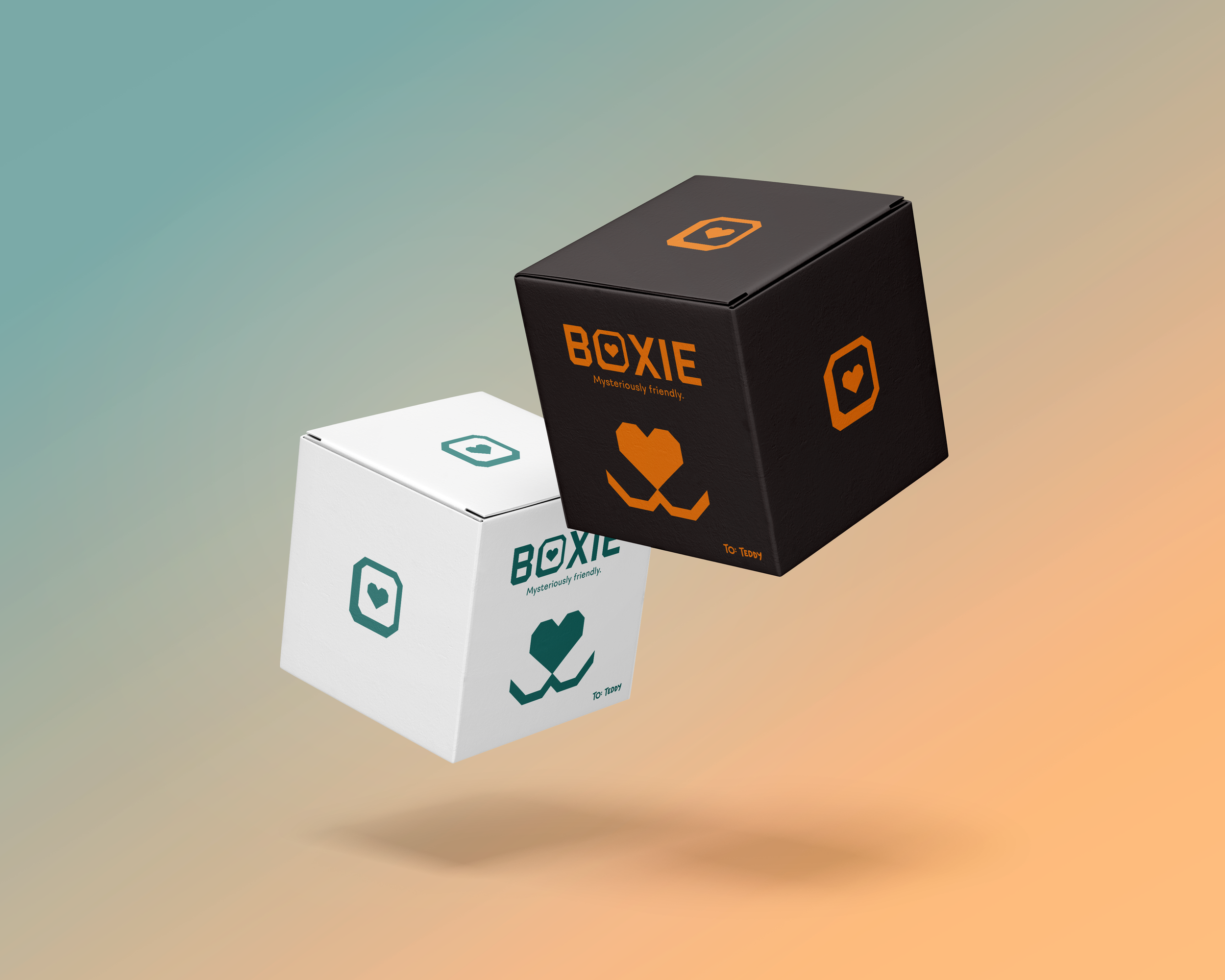 O nome Boxie surge a partir da palavra “Box”, fazendo referência direta às caixas surpresa entregues mensalmente, combinada com um sufixo que traz um tom mais amigável, carismático e próximo. O resultado é um nome curto, memorável e divertido, que reflete a proposta da marca de criar momentos de surpresa tanto para os pets quanto para seus donos.